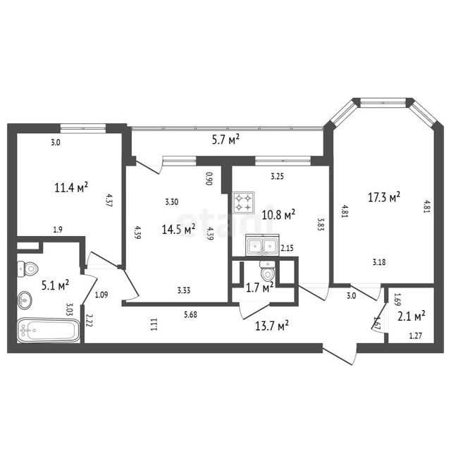 - Площадь кухни10.8 м²